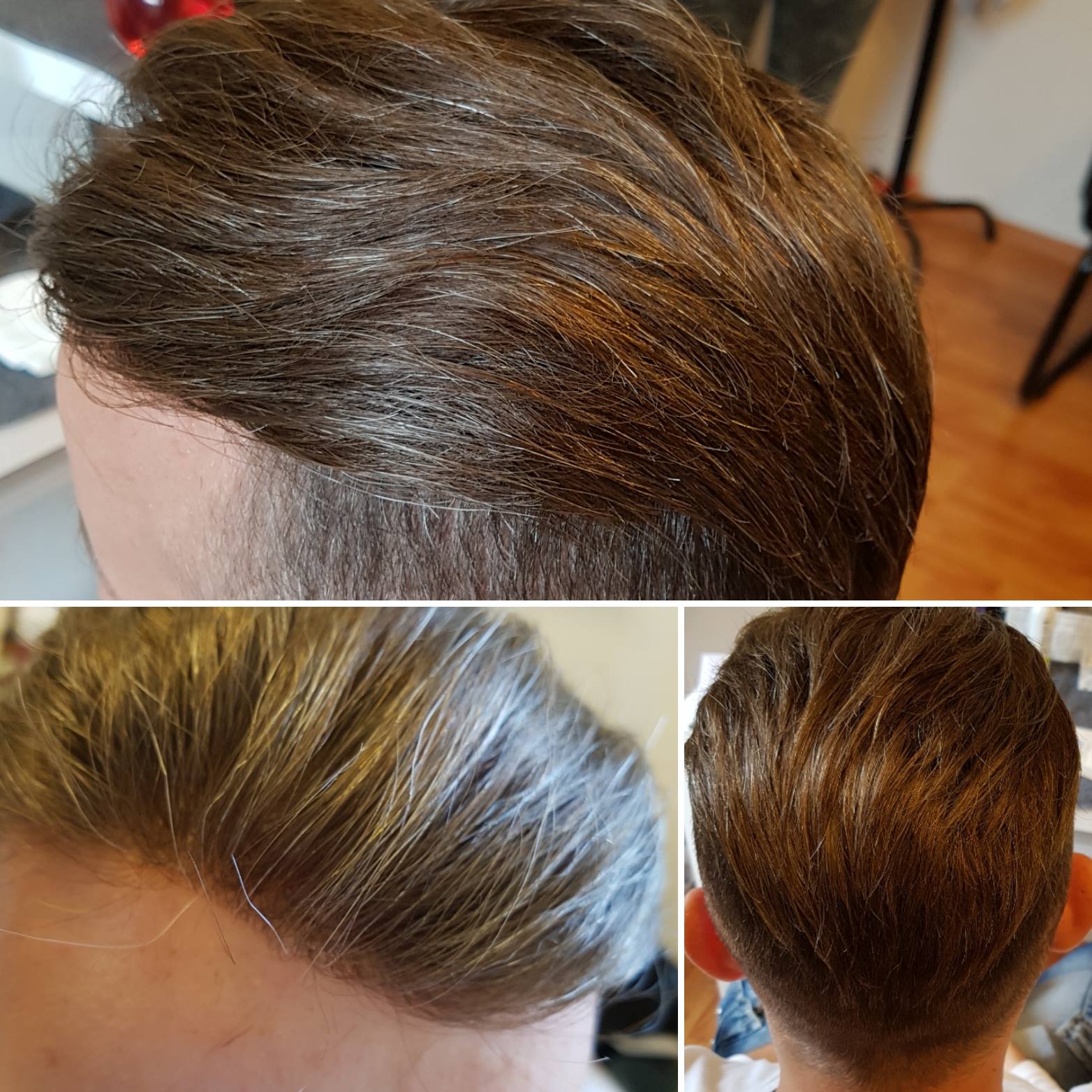 Fejtetődúsítás hajsűrítés férfiaknak őszes barna hajszínben
